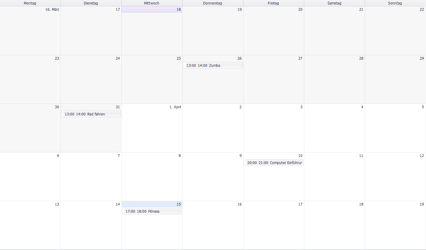 Mit dem Kurskalender können Sie sich schnell eine Übersicht aller Kurse verschaffen. Die tägliche, wöchentliche und monatliche Auslastung haben Sie so auf einem Blick.