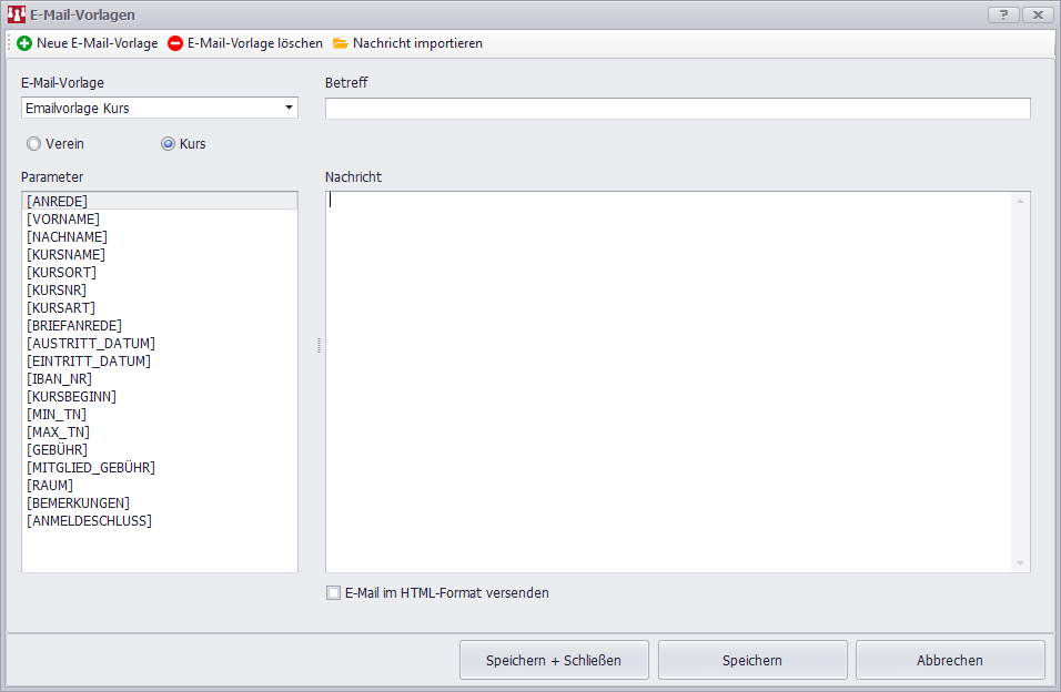 Sie können Ihren Teilnehmern direkt E-Mails durch vorgefertigte oder inviduelle Vorlagen schicken.