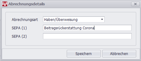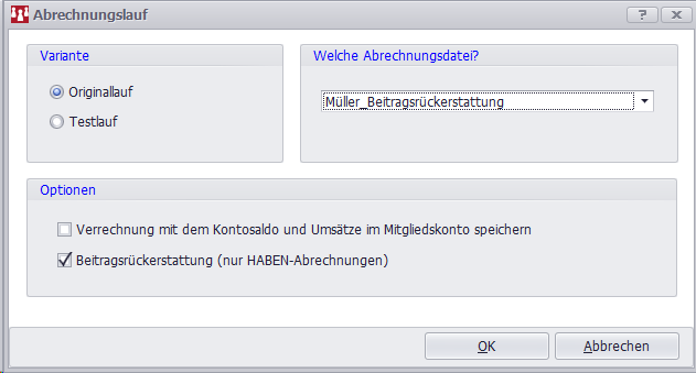 Hinweis: Wenn die Beitragsrückerstattung höher als der sollständige Betrag ist, wird die Erstattung nicht ausgeführt und in der Abrechnung gesondert als nicht abgerechnet ausgewiesen. So wird verhindert, dass ein Mitglied mehr Beitrag erstattet bekommt, als es hätte zahlen müssen.