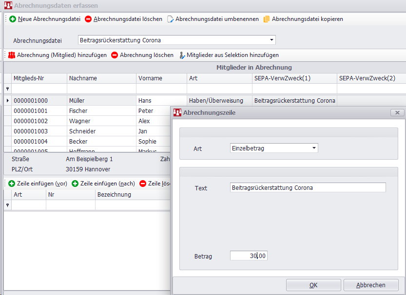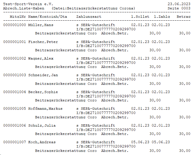 Jetzt haben alle Mitglieder die Abrechnungszeile mit der Beitragsrückerstattung hinterlegt und die Erfassung kann beendet werden.