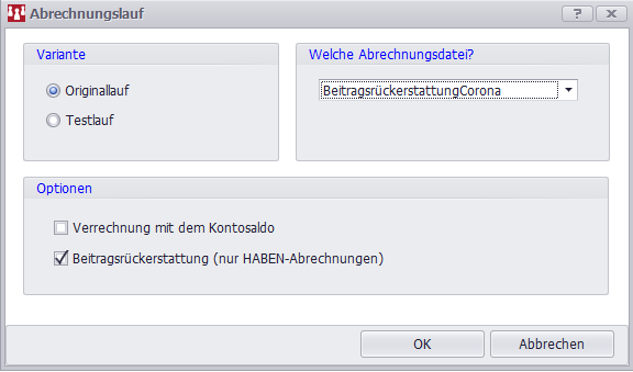 Der Abrechnungslauf kann jetzt durchgeführt werden (bitte Datensicherung vorher erstellen):