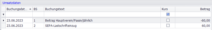 Beispiel: Herr Müller hat noch 50,00 € offene Beiträge. In diesem Fall bekommt er per SEPA 75,00 € für seine Übungsleitertätigkeiten überwiesen und der Kontosaldo bleibt bei -50,00 €. Die Zahlungen tauchen nicht in der Umsatzliste auf.