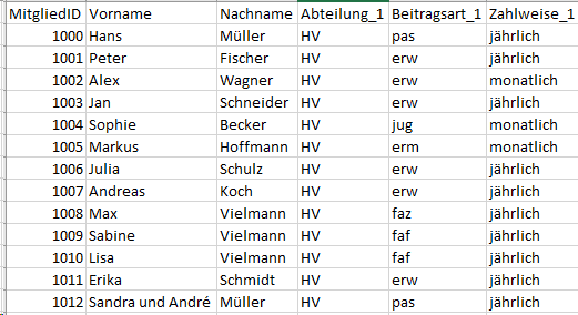 Es werden z.B. die Abteilungsbezeichnungen „Handball“/“Turnen“ ausgegeben.