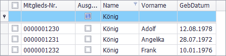 Um die Mitglieder noch weiter zu filtern, tragen Sie in das Filterfeld der entsprechenden Spalte das Filterkriterium ein.
