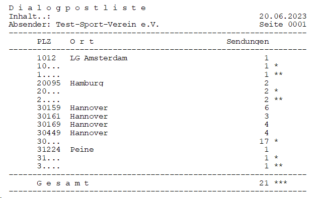 Durch die Zulassungsbedingungen der Post AG ist jede Einlieferung nach den genannten Kriterien aufzubereiten und dieser eine Liste