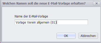 . Klick auf diesen Button; Es kann der Name der neuen E-Mail-Vorlage eingegeben werden