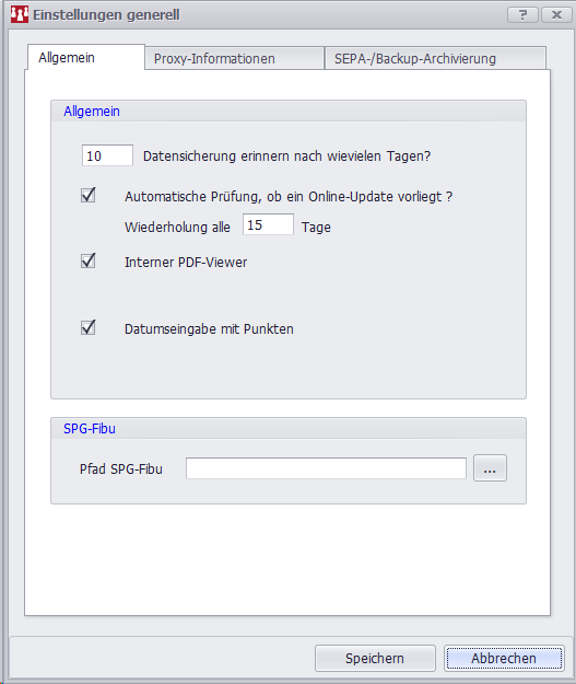 Wenn Sie auch SPG-Fibu nutzen und die damit erfassten Zahlungen nach SPG-Verein importieren wollen, ist hier der Verzeichnispfad einzutragen, in den SPG-Fibu installiert wurde.