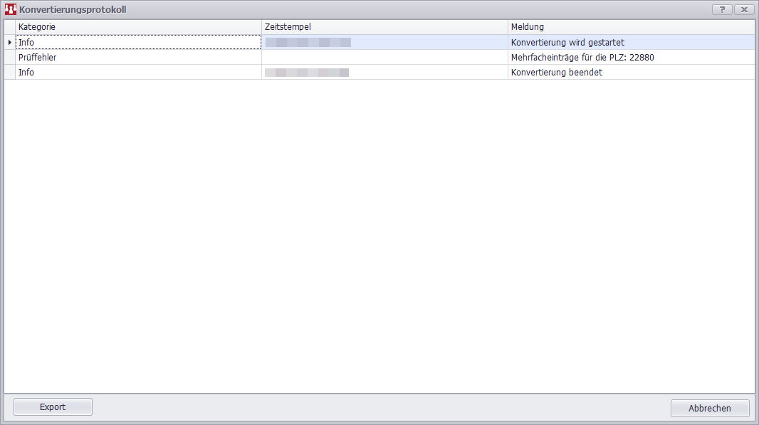 Nach dem Öffnen der Maske können Sie sich einen Überblick über das Konvertierungsprotokoll verschaffen.