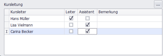 Den jeweiligen Mitgliedern kann eine spezielle Funktion (Leiter/Assistent) dieses Kurses zugewiesen werden.