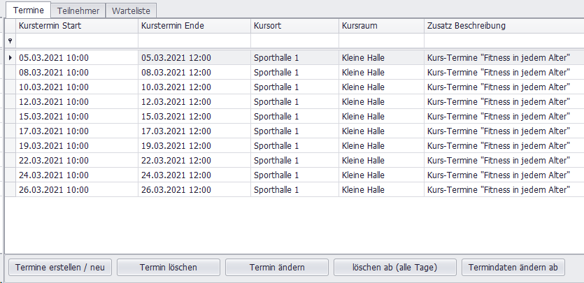 Alle Termine ab einem markierten Termin können gelöscht werden.