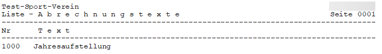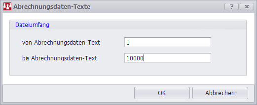 Die unter [Abrechnungsdaten pflegen] gemachten Vorgaben können auch in Listenform ausgegeben werden. Die Listenausgabe ist selbsterklärend. Bei allen Listen sind zunächst der Dateiumfang festzulegen: