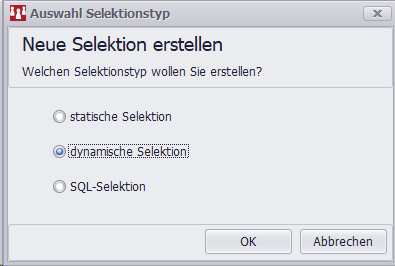 Klicken Sie auf den Button "Neue Selektionen" bzw. "Neu" wählen bei "Auswahl Selektionstyp" "dynamische Selektion" aus.