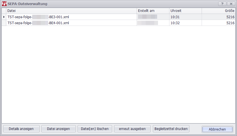 Sie bekommen die erzeugten SEPA-Dateien angezeigt und haben mehrere Möglichkeiten diese zu bearbeiten: