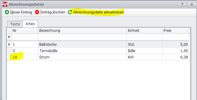 Wenn Sie Änderungen in den Abrechnungdaten>Texte bzw. >Arten durchgeführt haben, müssen u.U. die Abrechnungsdateien aktualisiert werden.