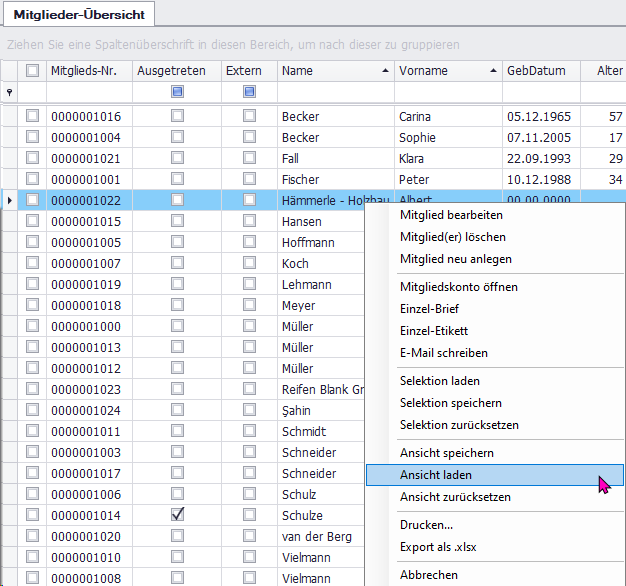 Klicken Sie dafür in der Mitglieder-Übersicht mit der rechten Maustaste auf "Ansicht laden".