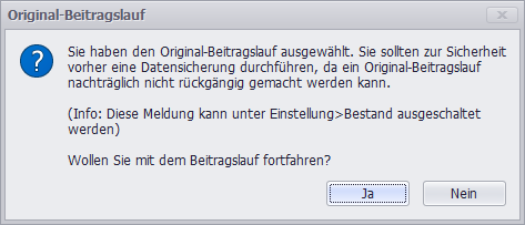 Hiermit bestimmen Sie, ob vor dem Original-Beitragslauf eine Sicherheitsabfrage angezeigt werden soll.