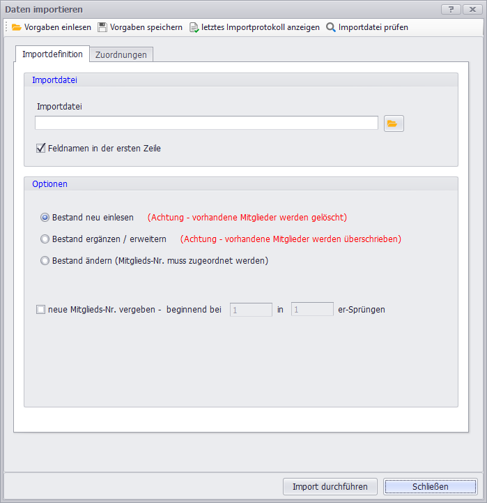 Als weitere Option können auch neue Mitgliedsnummern vergeben werden.