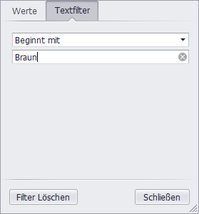 Auf der Registerkarte „Text“ bekommen Sie die gerade eingegebenen Filterkriterien in programmtechnischer Schreibweise angezeigt.