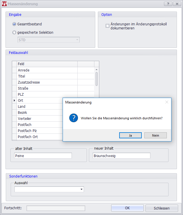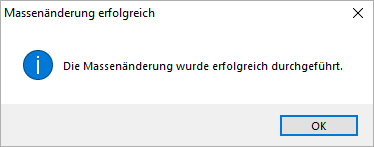 Zum Durchführen der Massenänderung bestätigen Sie bitte mit Ja. Im Anschluss, wenn alles geklappt hat, erhalten Sie folgende Meldung: