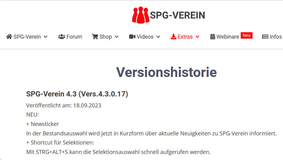 Dort werden neue Features bzw. Korrekturen von SPG-Verein aufgelistet.