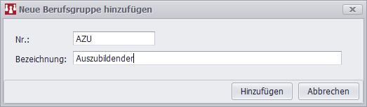 einen neuen Berufsgruppe hinzuzufügen: