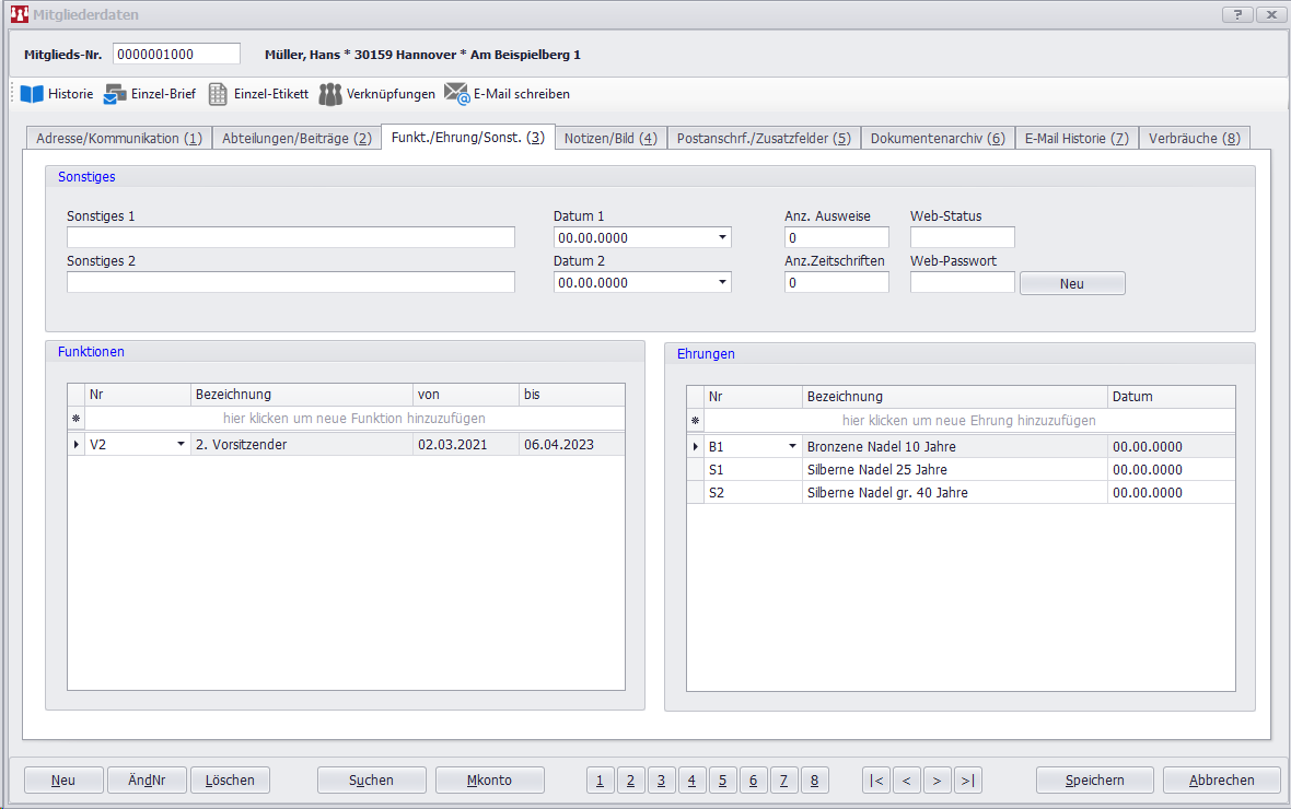 Registerkarte 3: Funktionen/Ehrungen/Sonstiges