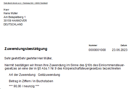 Beispiel einer Spenden-/Zuwendungsbescheinigung:
